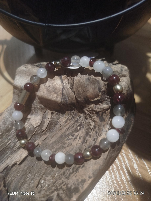 Composé de Grenat, Pierre de Lune et Labradorite, il ravive la flamme amoureuse, harmonise les énergies entre partenaires et aide à exprimer les émotions avec douceur et authenticité.